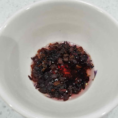 I am the tea lover at home, so I thought it could be a good idea to make some ink with pure hibiscus herbal tea. I poured boiled water over the tea, set it aside for few minutes then added a bit of vinegar. I drained the ink through a sieve and let it aside for 30 minutes. That ink was a bright reddish pink, which turned into a beautiful blue-violet on the paper.